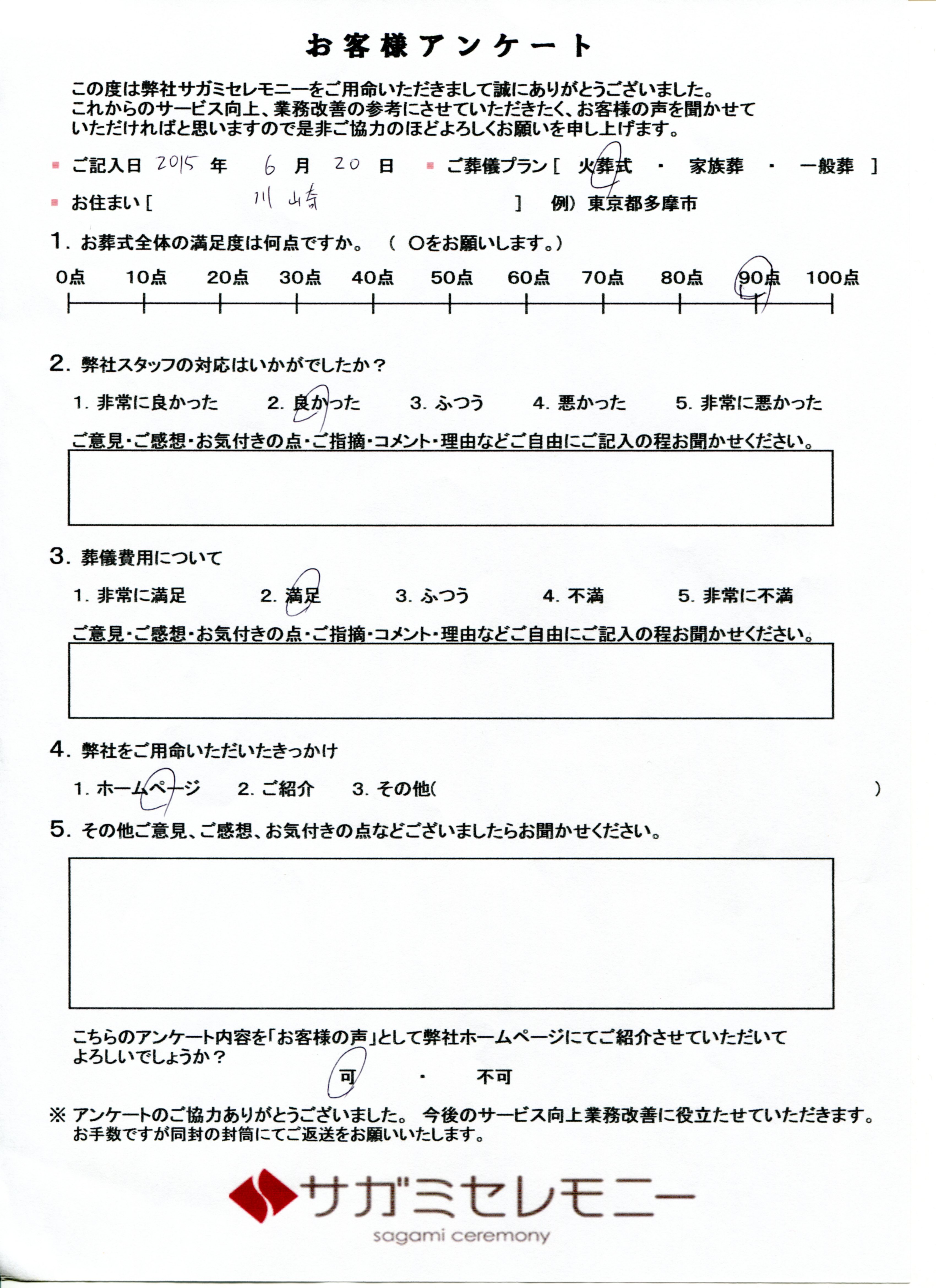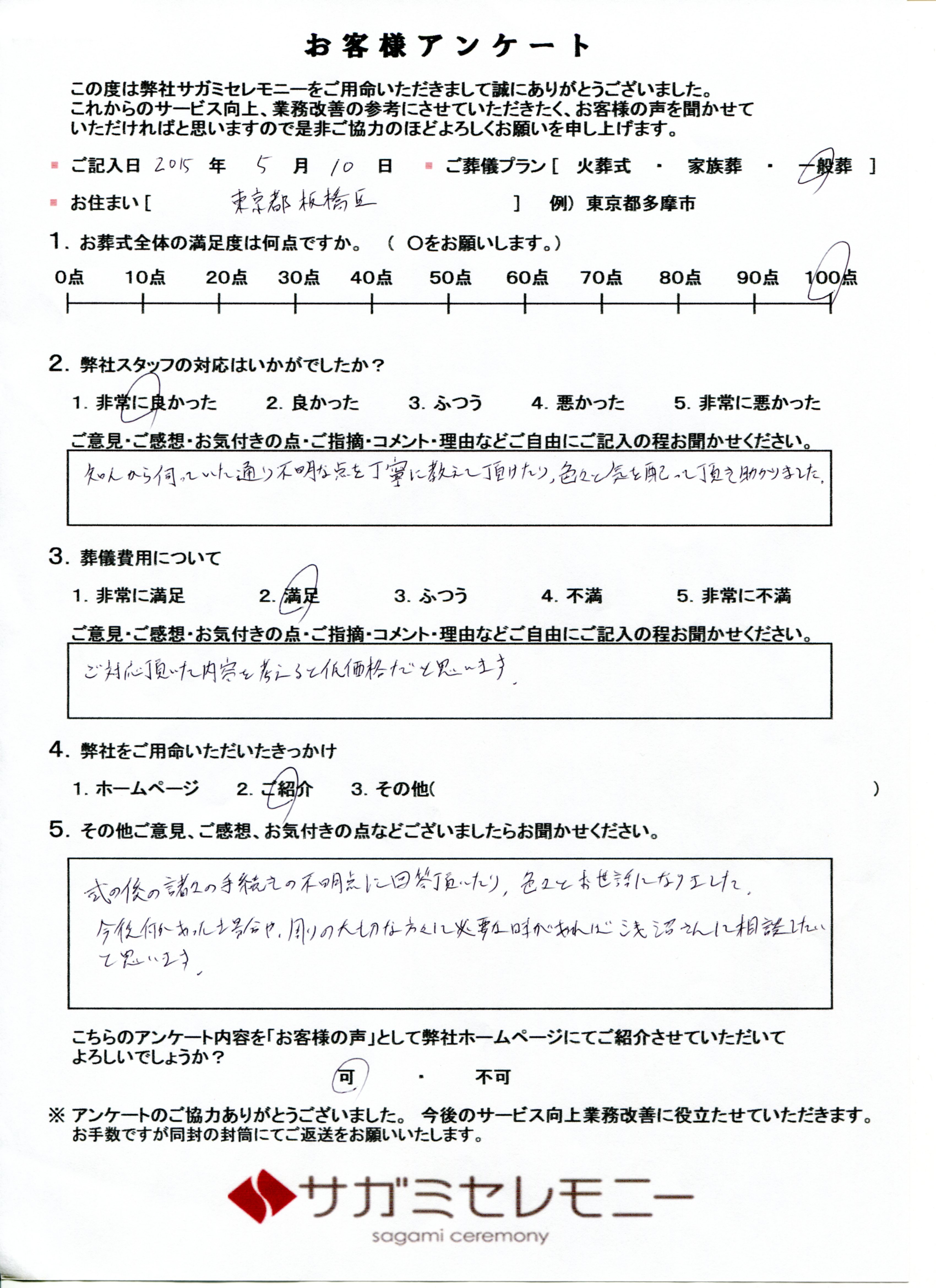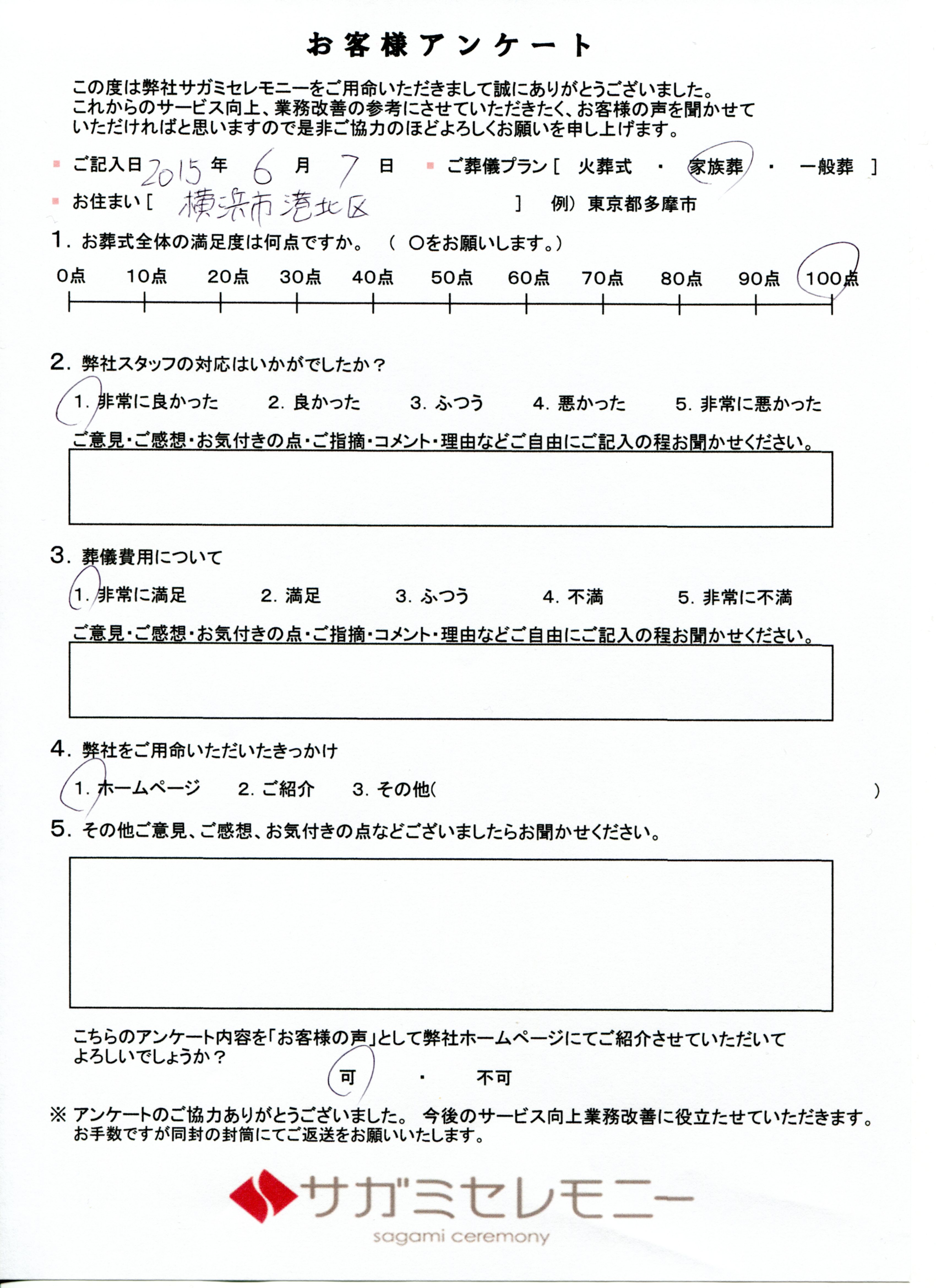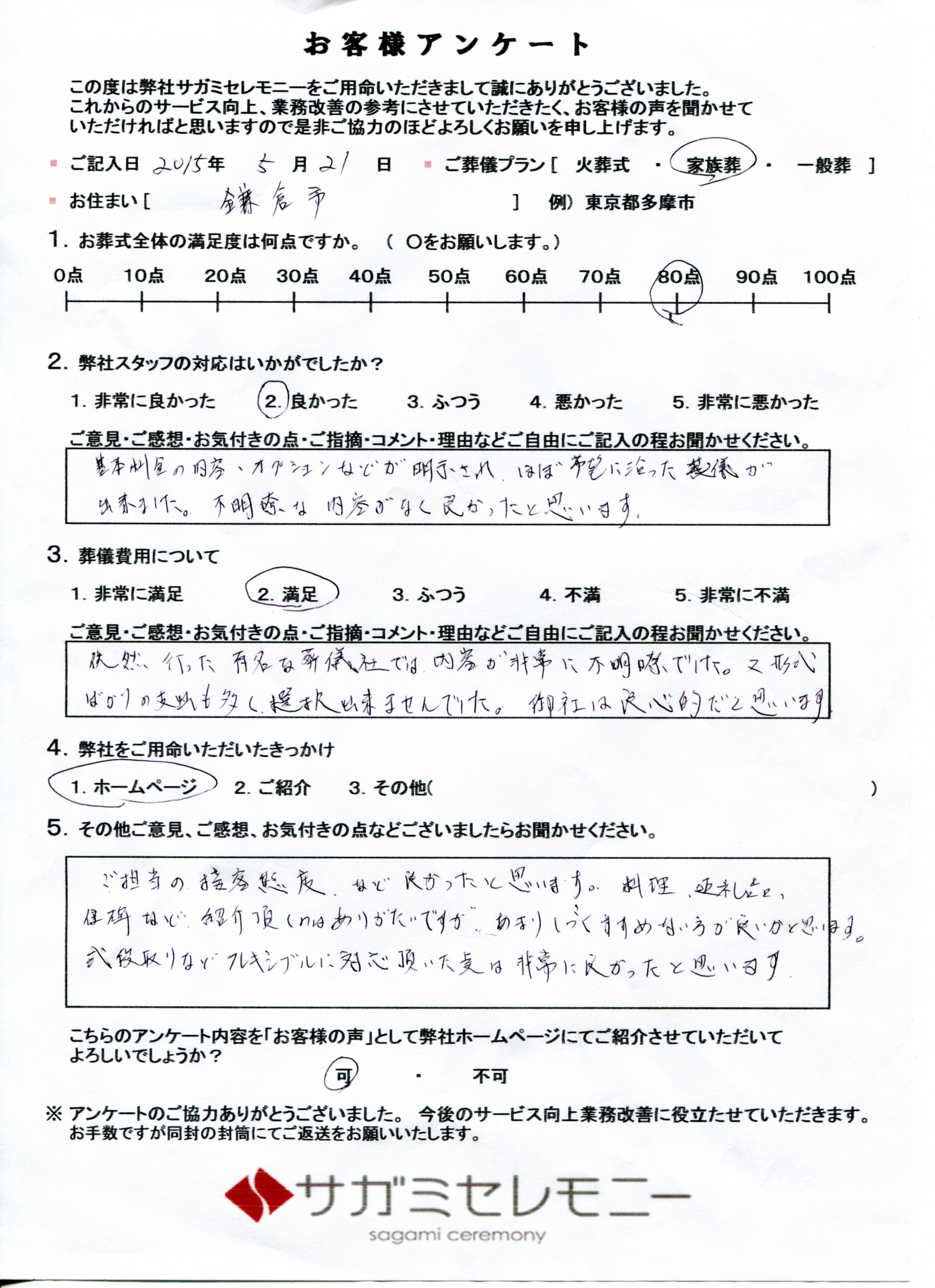 以前行った有名な葬儀社では内容が非常に不明瞭でした。又形式ばかりの支出も多く選択出来ませんでした。御社は良心的だと思います。