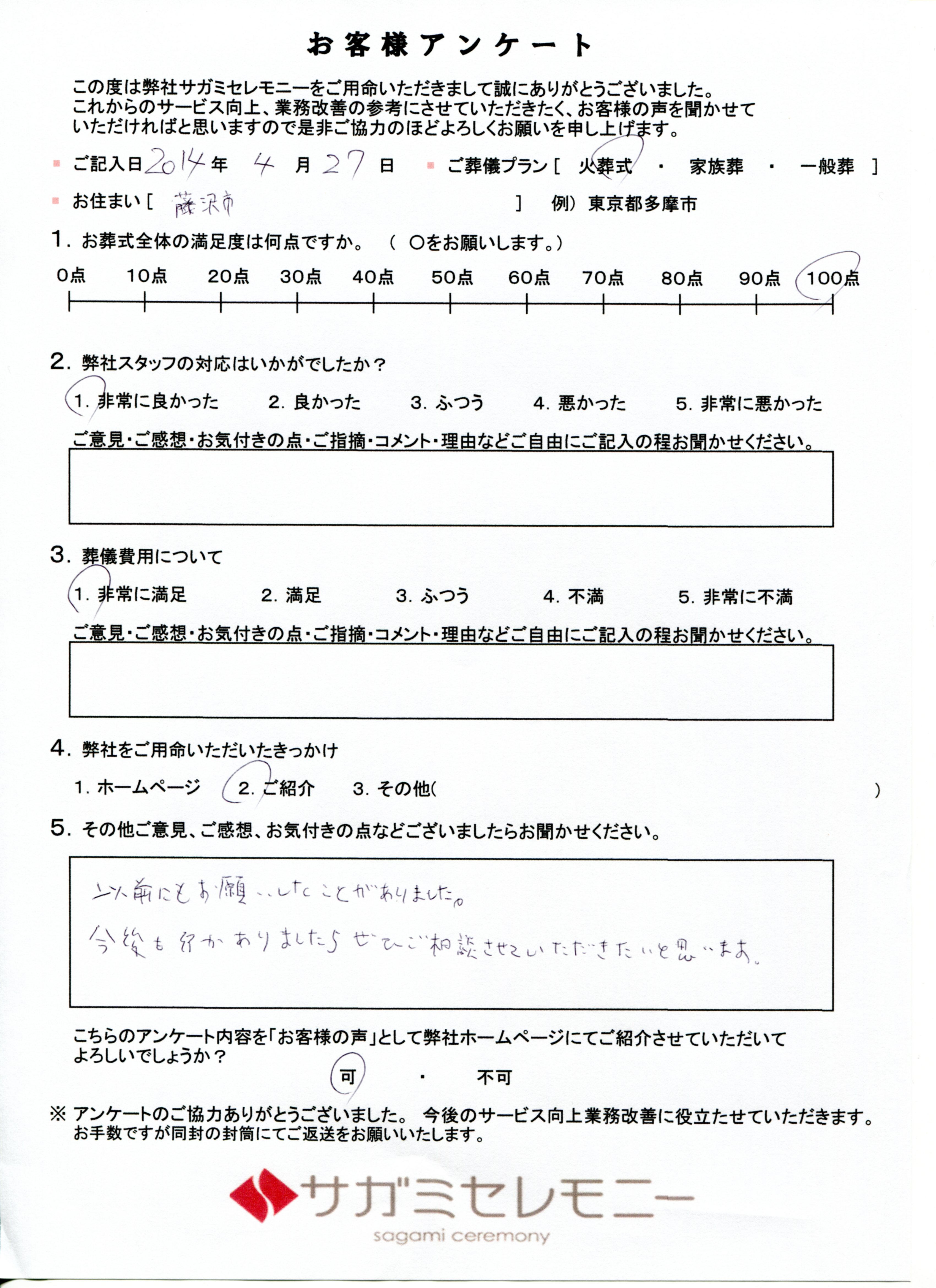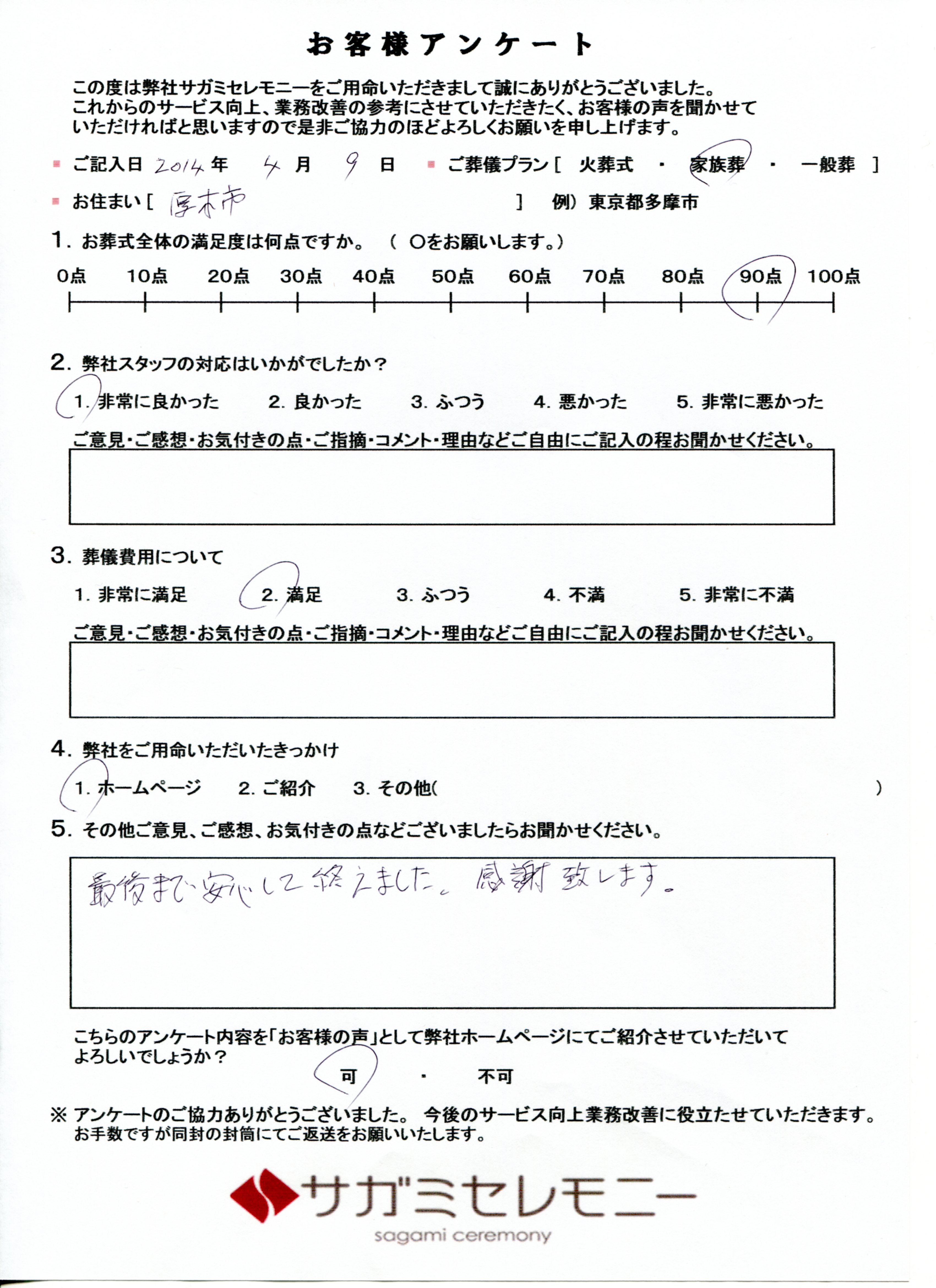 お客様アンケートご記入ありがとうございます。